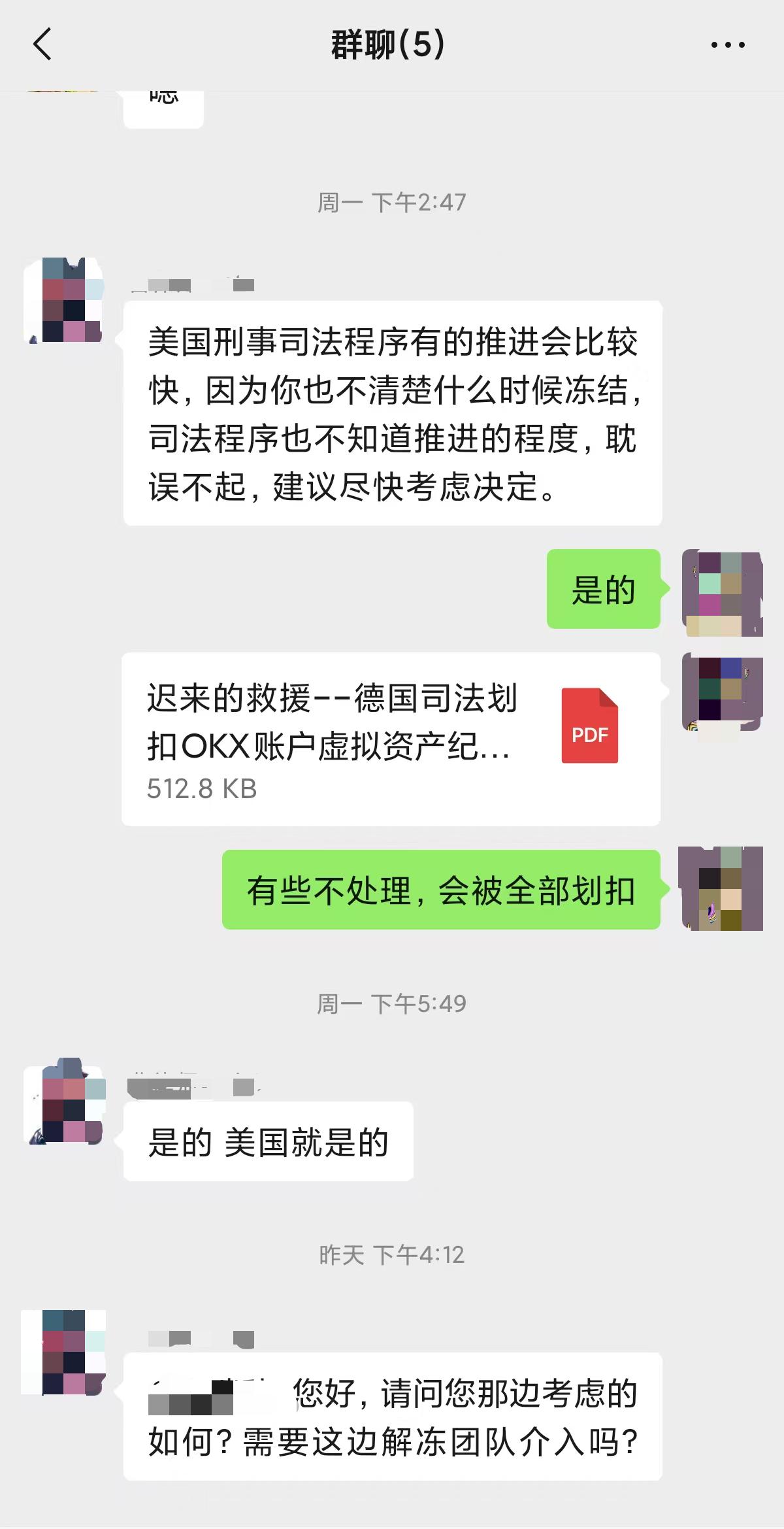 冻结事宜涉及金融、国际法、区块链等多领域,复杂程度高,务必第一时间寻求具备资质和经验的正式法律团队协助。专业团队能精准把握程序、高效沟通、制定策略,以最大程度保障权益。自行处理或寻求非正规渠道解决,极易错失良机,导致无法挽回的损失。