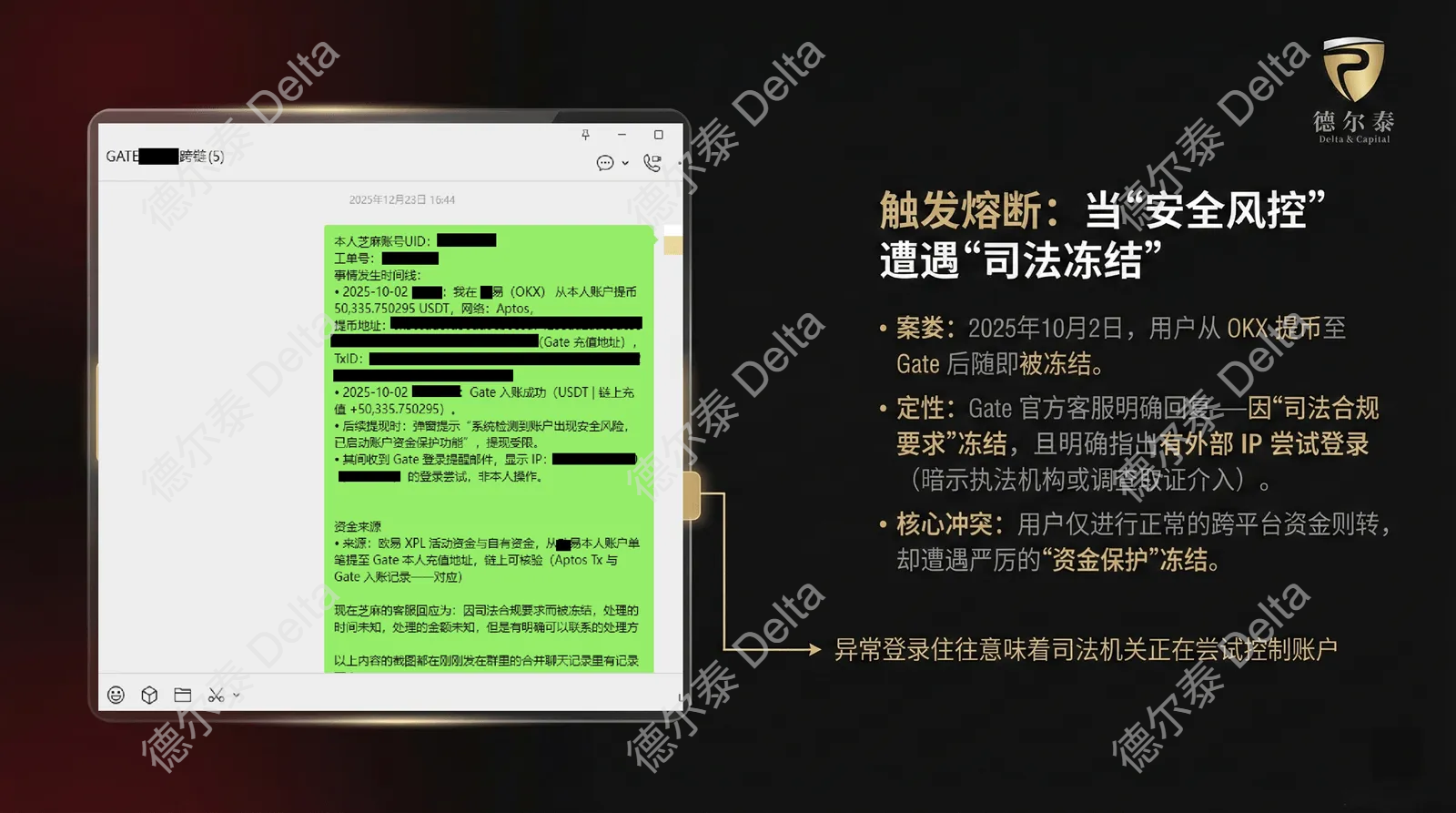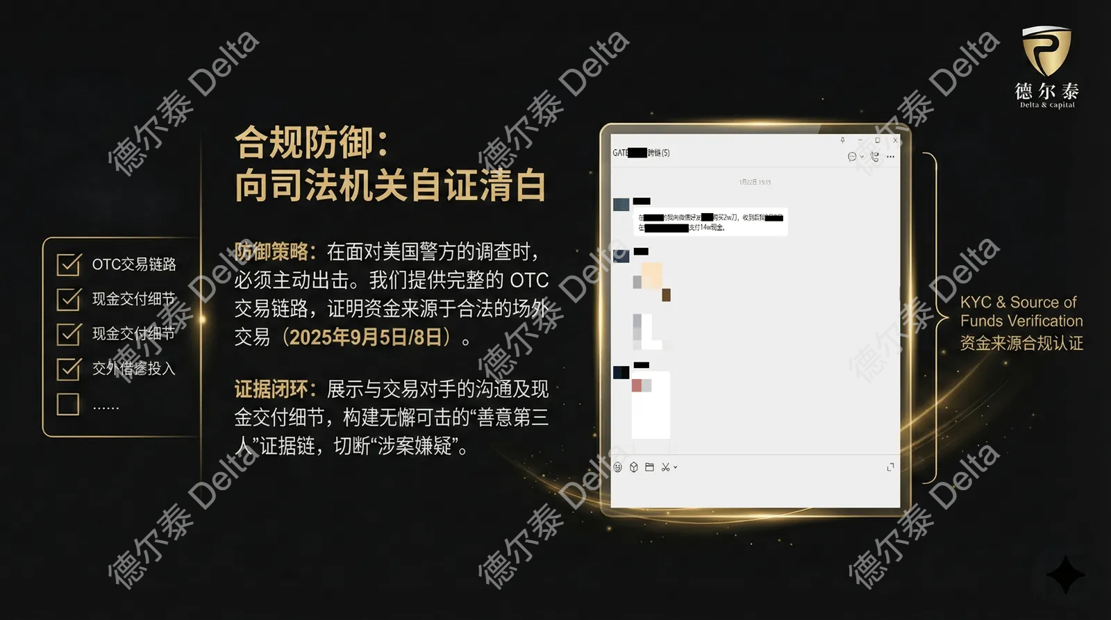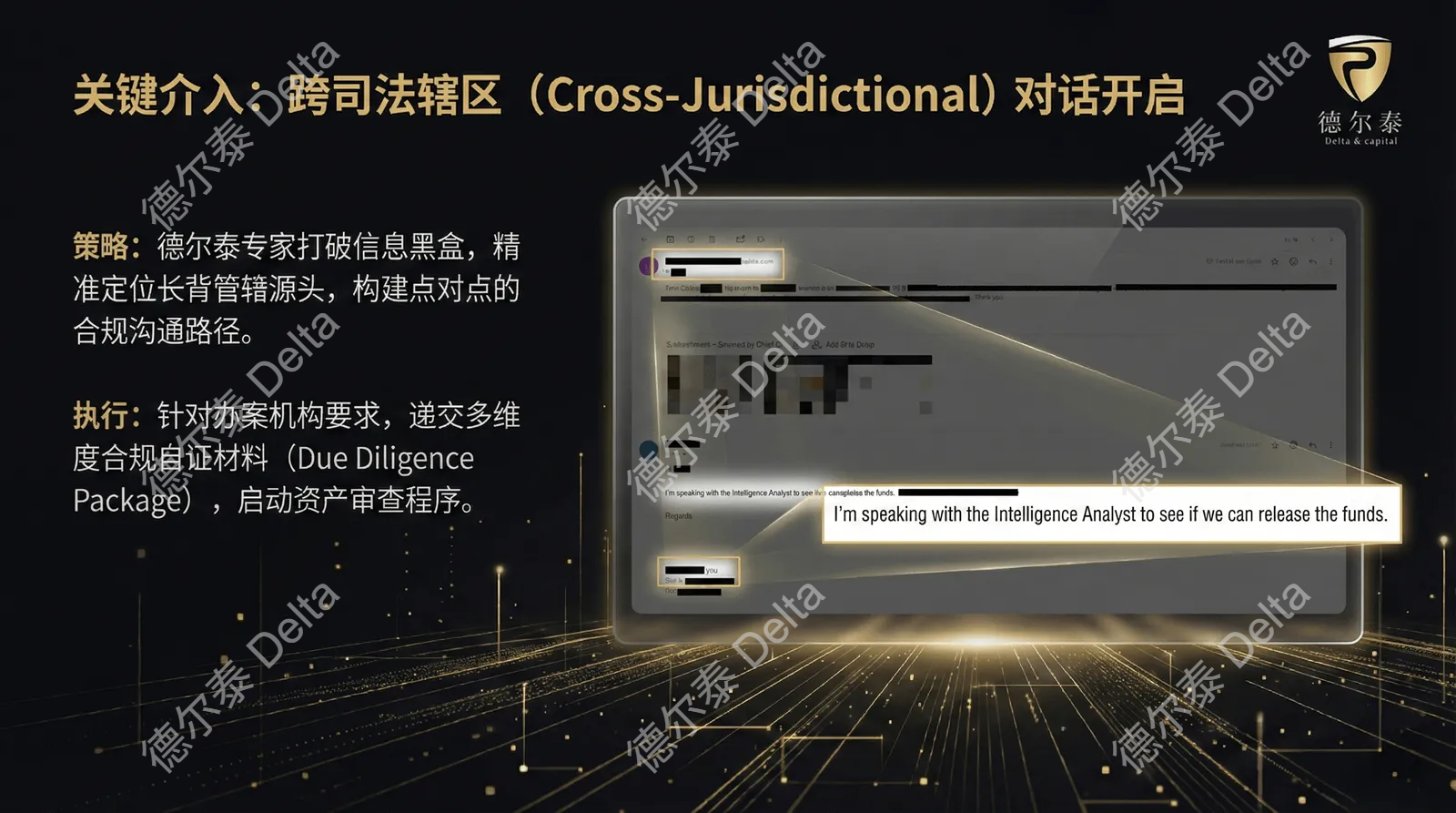 德尔泰(Delta&Capital)核心观点:在面对跨国司法限制时,消极等待往往收效甚微。唯有通过专业的法律途径,主动向执法机构提供清晰的KYC及资金来源证明(Source of Funds Verification),构建合规防御,才能有效修复流动性,保全资产价值。
